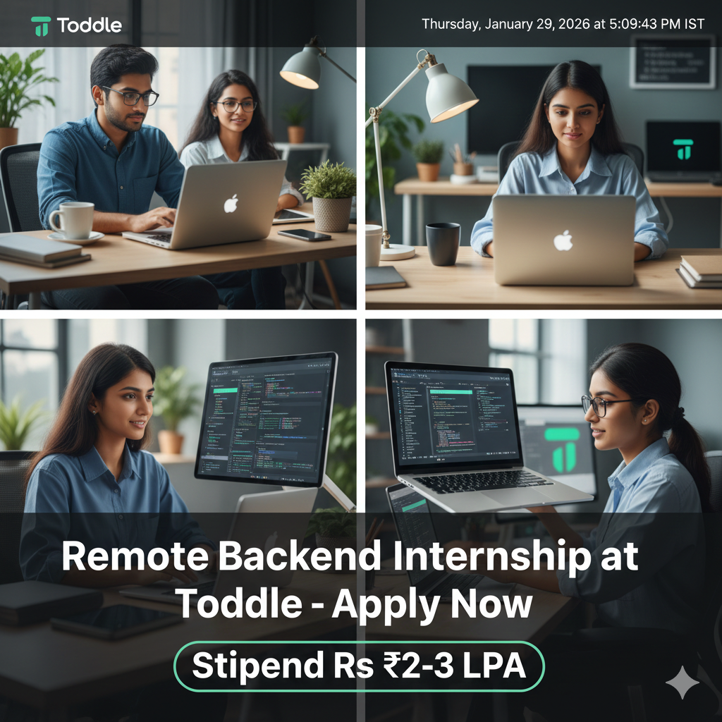 Kickstart your backend career with Toddle, the AI-powered EdTech platform revolutionizing K-12 education worldwide. This remote Backend Internship offers a generous ₹2-3 LPA stipend (that’s ₹15K-25K/month for full-time interns), perfect for 2025/2026 batch students passionate about scalable systems and impactful tech.