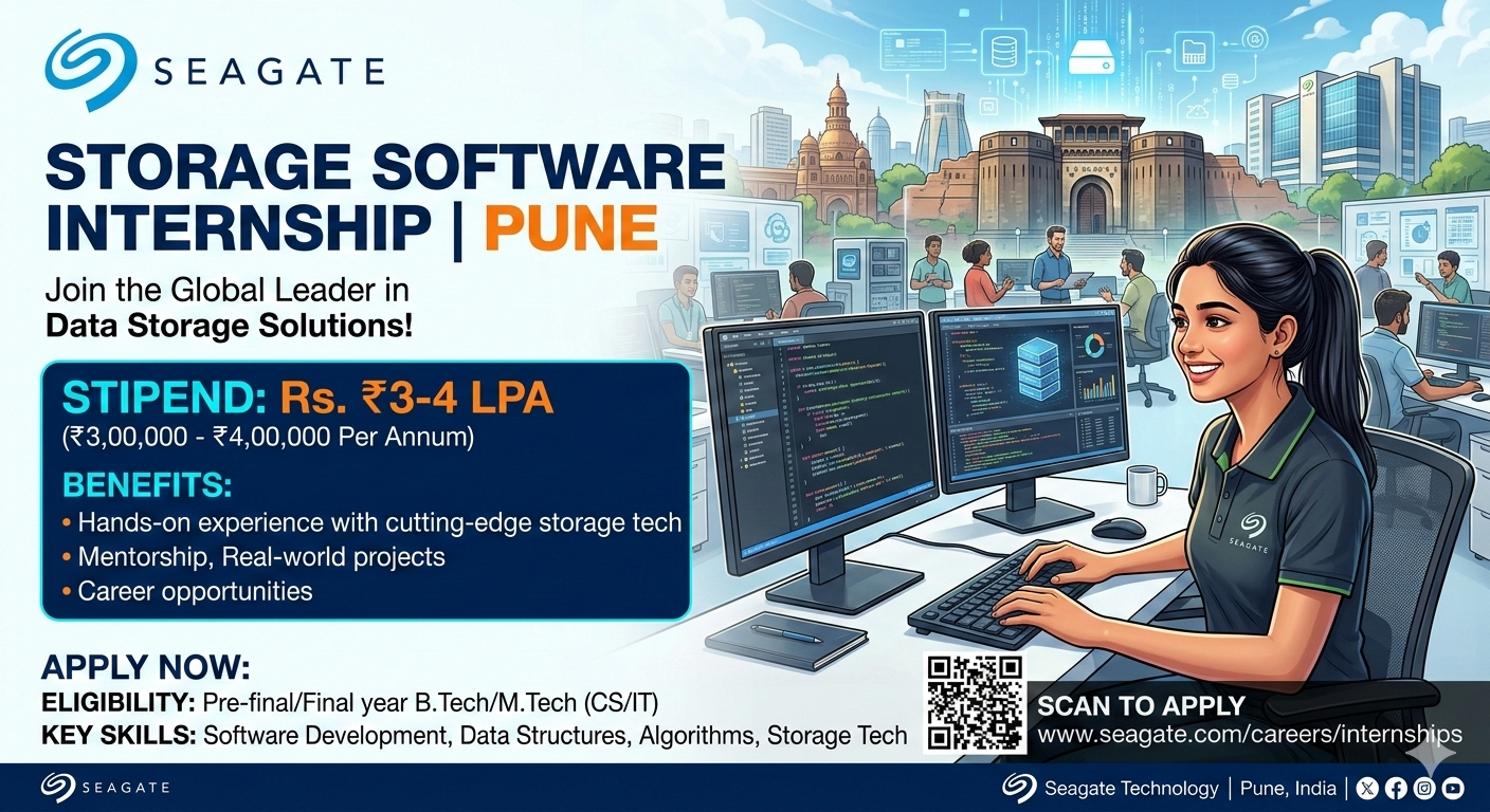 Are you a tech enthusiast passionate about storage software, system integration, and cutting-edge hardware? Seagate Technology, a global leader in data storage solutions, is offering an exciting Storage Software Internship at its Pune office. With a competitive stipend of ₹3-4 LPA, this is your chance to dive into real-world projects at one of India’s top tech hubs. If you’re searching for Seagate Pune internships 2026 or software engineering internships in Pune, this opportunity stands out for freshers and students eyeing careers in storage tech and system integration.